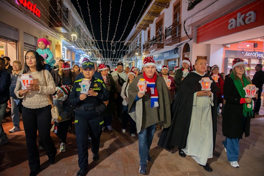 El encendido del alumbrado incluyó el tradicional Desfile de Faroles, un recorrido que inició en el Puente Peatonal y culminó en la Plaza de la Libertad, donde miles de familias iluminaron la ciudad con velas, faroles artesanales y muestras de folclor.